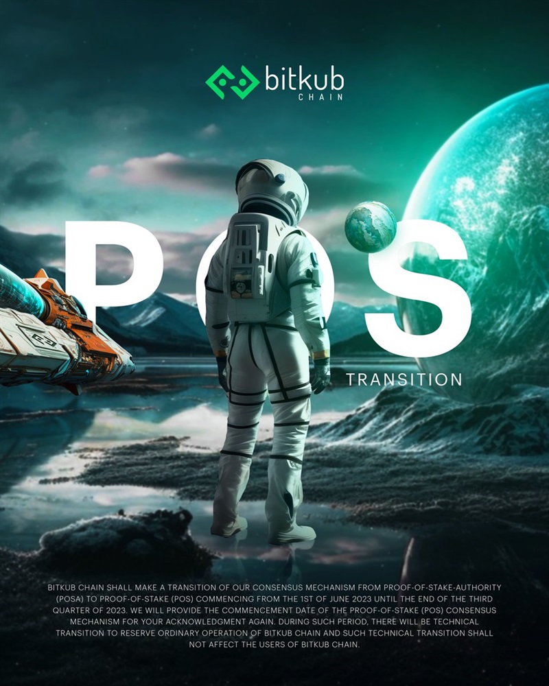💚Bitkub Chain will make a transition of our consensus mechanism from Proof-of-Stake- Authority (PoSA) to Proof-of-Stake (PoS) starting from the 1st of june 2023 until the end of the third quarter of 2023.