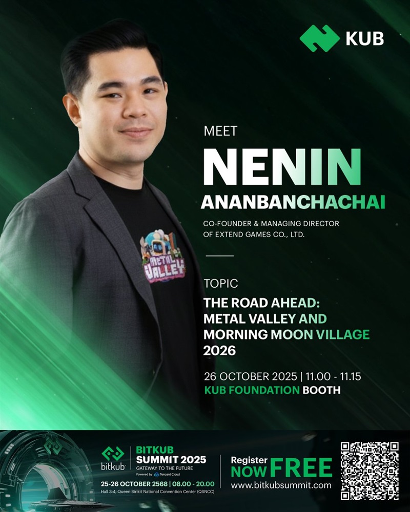 KUB Coin will conduct a mini session featuring Nenin Ananbanchachai, сo-founder and managing director of Extend Games Co., Ltd., at the KUB Foundation booth during BITKUB SUMMIT 2025 in Bangkok. The presentation is scheduled for October 26th from 04:00 to 04:15 UTC.