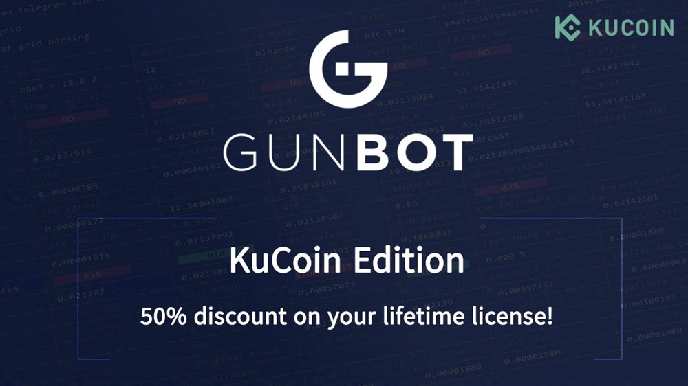 New Gunbot users will enjoy a 50% discount on the co-branded Gunbot KuCoin Edition at gunthy.org