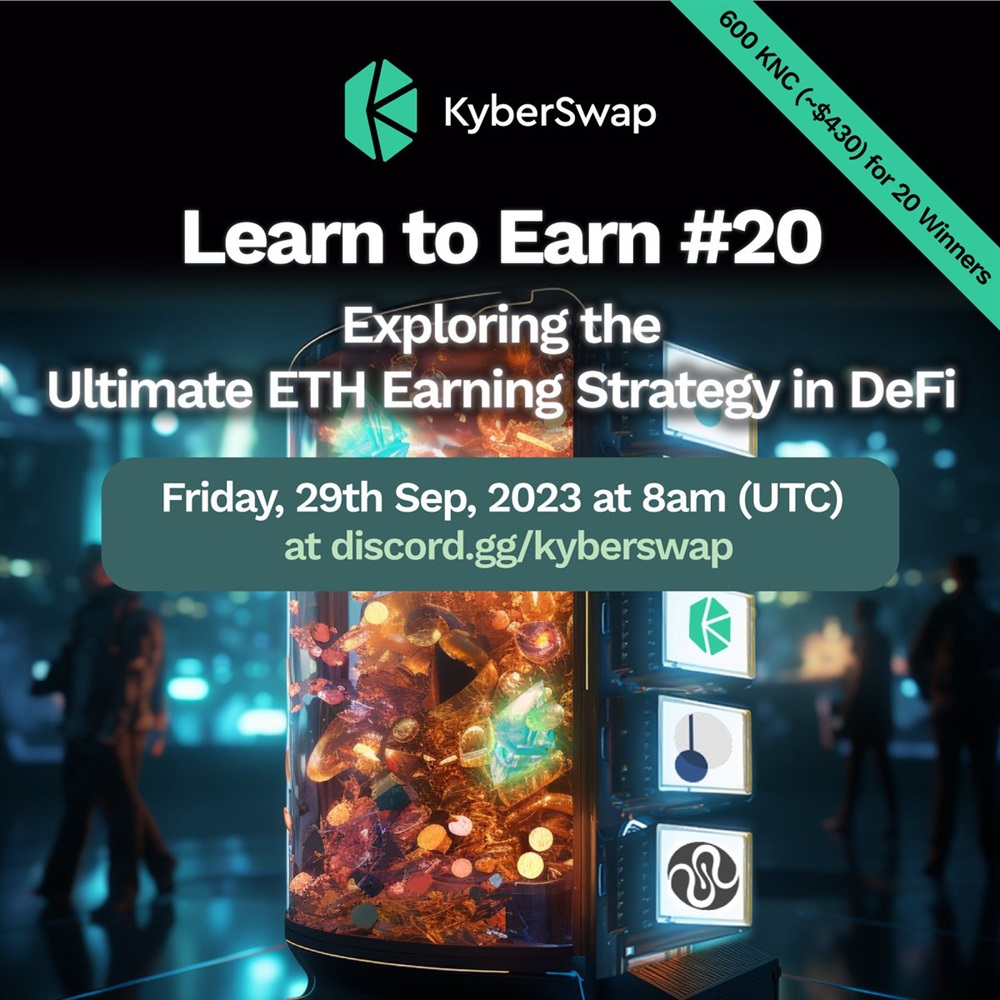 Kyber Network Crystal will host an AMA on Discord on the ultimate ETH earning strategy in DeFi. This strategy is a collaborative effort with Lido Finance, Axelar, Squid, and Pendle. The event is scheduled to take place on the 29th of September at 8 am UTC.