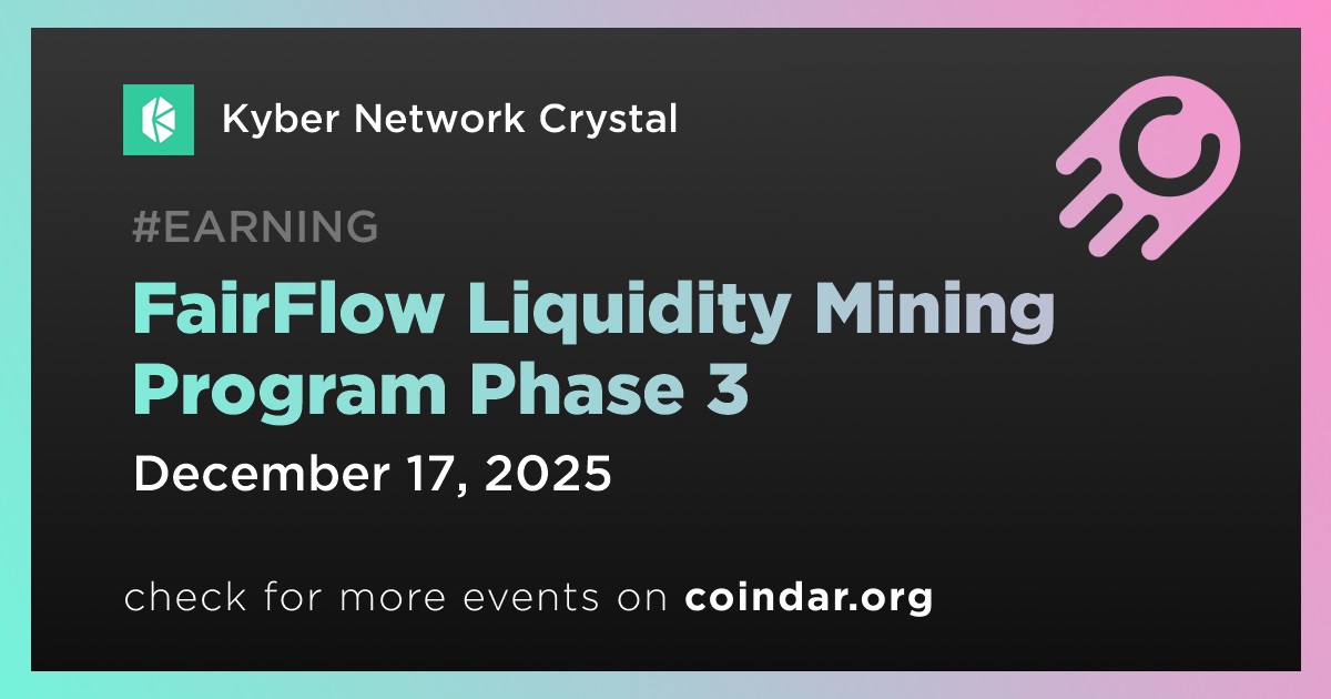 Kyber Network Crystal moves the FairFlow Liquidity Mining Program on KyberSwap into Phase 3, starting December 17.