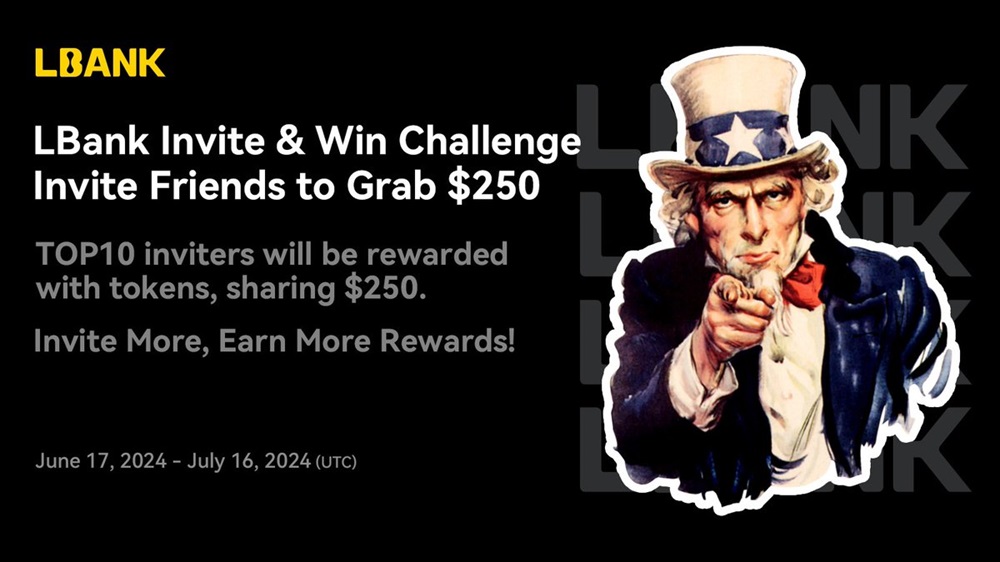 LBK is hosting the LBank Invite & Win contest from June 17th to July 16th. The challenge involves inviting more than 30 friends and encouraging them to participate in the group’s discussions. The top 10 individuals who invite the most friends will share a reward of $250 in USDT.