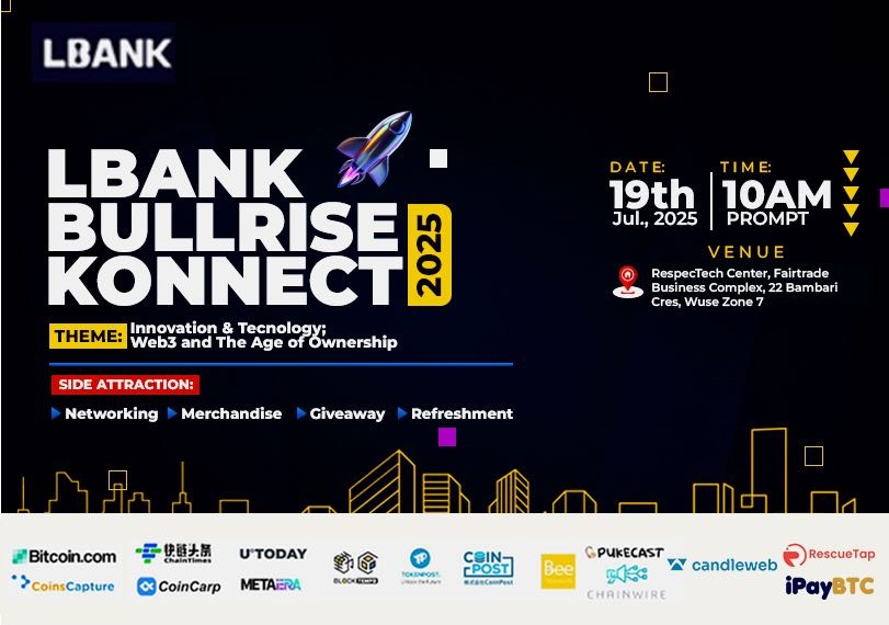 LBK Bullrise Konnect 2025 will be held on July 19th in Abuja. The event is scheduled to commence at 09:00 UTC and will address Innovation & technology, Web3, and the age of ownership.