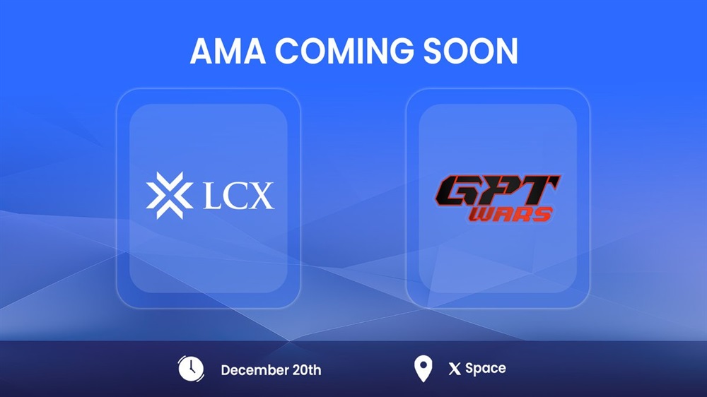 LCX will host an AMA on X in collaboration with GPT Wars on December 20th. The event will focus on discussing the future of cryptocurrency and Web3 technologies.