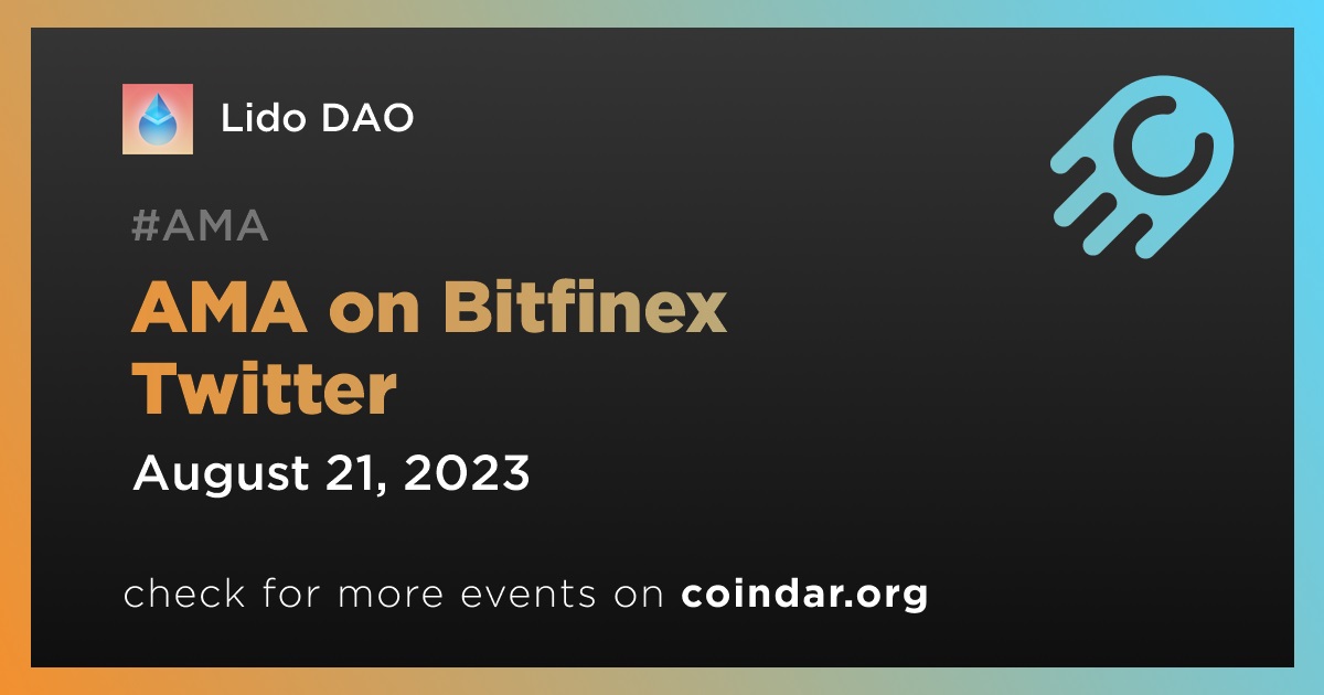 Lido DAO is set to participate in the upcoming Bitfinex AMA on Twitter. The discussion will revolve around Lido DAO’s platform, which is renowned for providing liquidity to staked Ethereum and other tokens. The event is scheduled to take place on August 21st at 2 pm UTC.