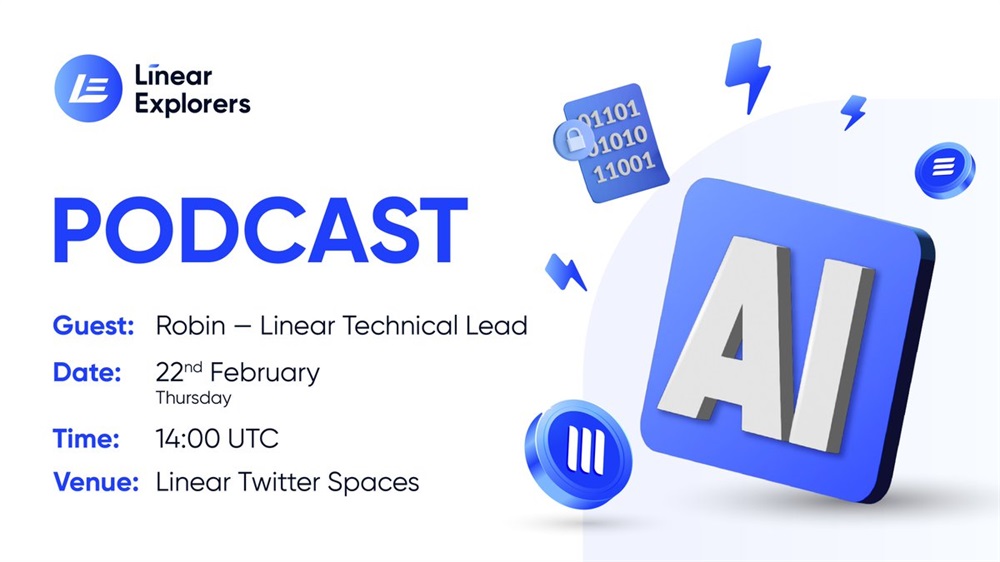Linear is set to host a new episode of the LinearExplorers podcast on X on February 22nd. The episode will feature the technical lead at Linear. The discussion will focus on the role of AI in the cryptocurrency sector, particularly its impact on blockchain technology.