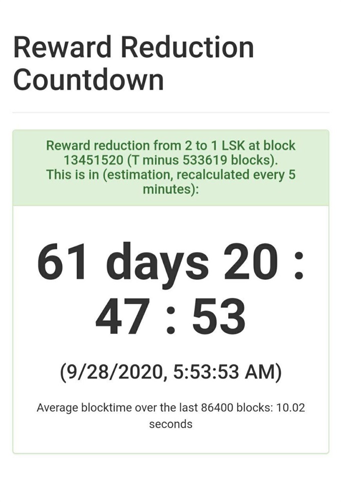 Lisk LSK: Block Reward Halving