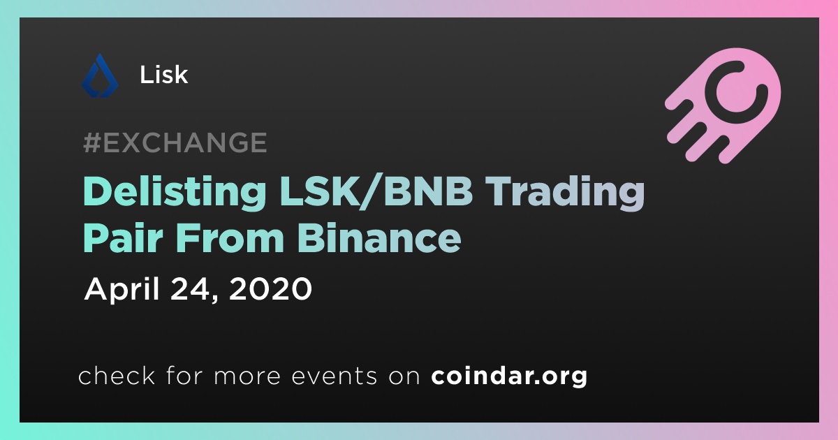 Lisk LSK: Delisting LSK/BNB Trading Pair From Binance