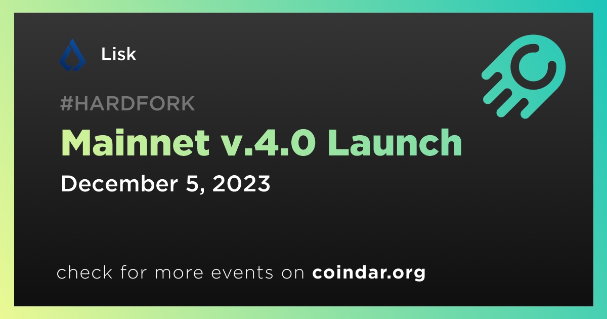 Lisk will conduct mainnet upgrade to v.4.0 at block height 23,390,991 on December 5th at 10:00 UTC.
