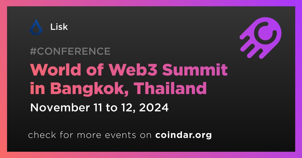 Lisk will participate in the World of Web3 Summit in Bangkok on November 11th-12th. The event will feature expert perspectives on the latest Web3 trends and provide opportunities for networking with leading innovators and thought leaders in the Web3 space.