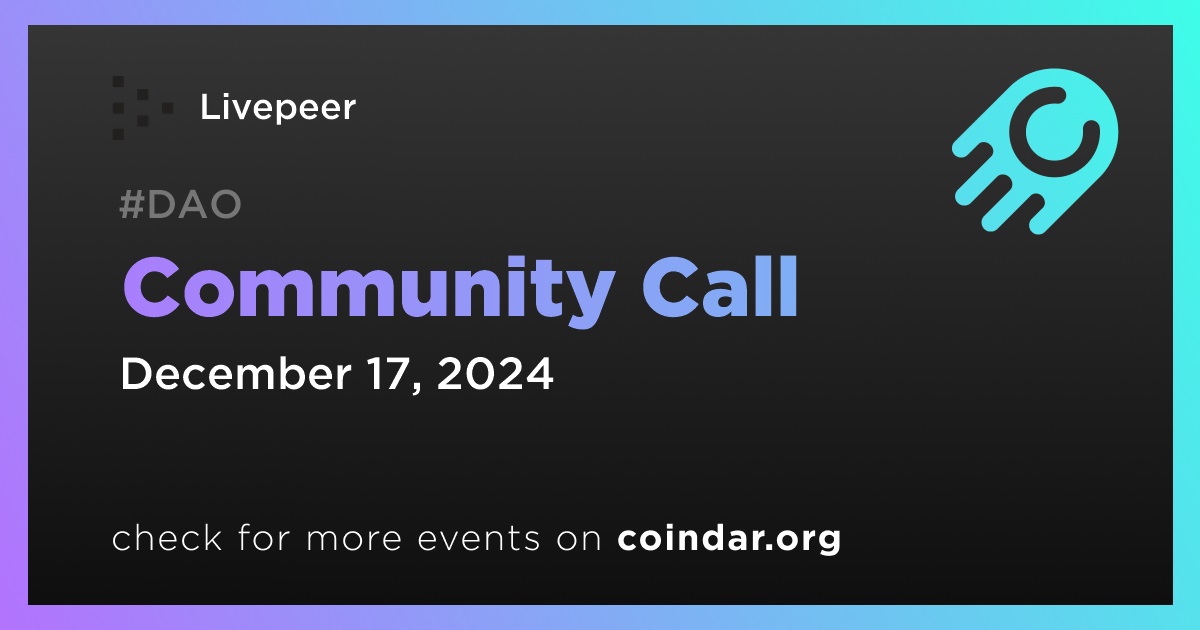 Livepeer will hold a community call on December 17th at 17:30 UTC. The event will provide updates on the network, products, and treasury, and will feature discussions from two special guests on building impactful projects within the Livepeer ecosystem and AI.