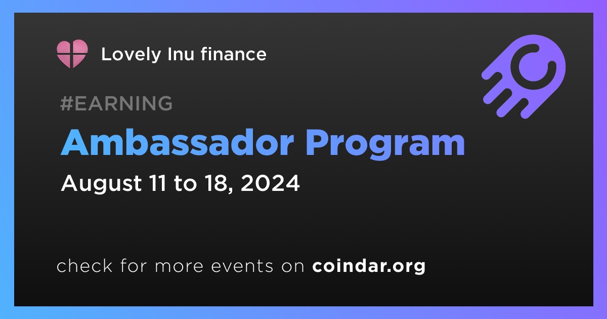 Lovely Inu finance is initiating an ambassador program specifically for Key Opinion Leaders (KOLs) with large communities. This program is set to be the largest committed airdrop in history. The application period for this program is from 11th to 18th August.
