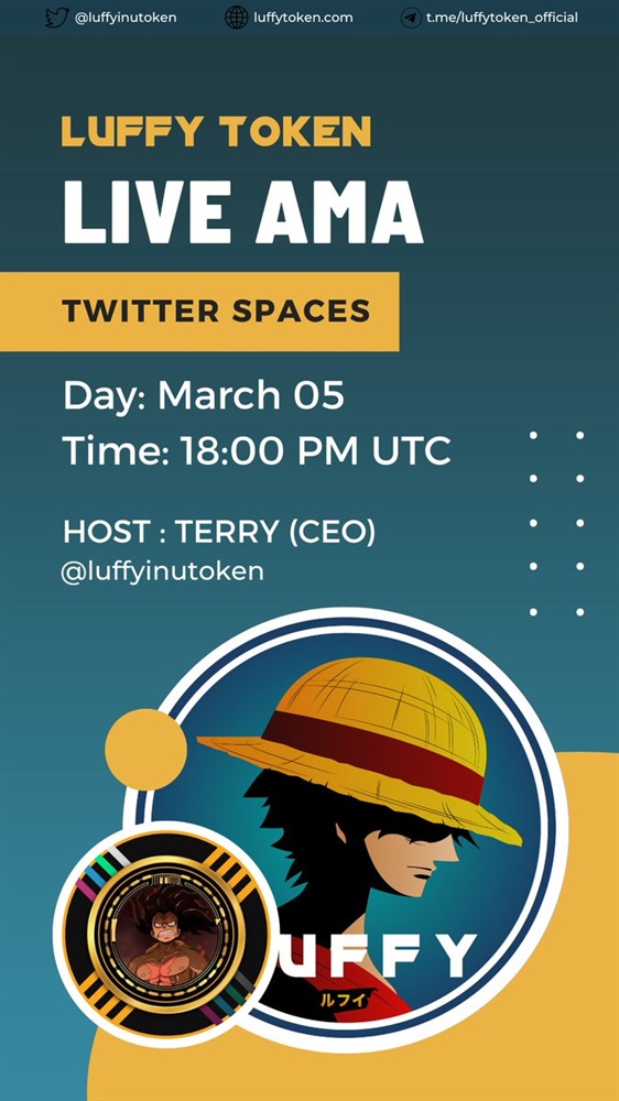 Join us on Twitter Spaces for the next AMA with Terry, the CEO of #LuffyToken !