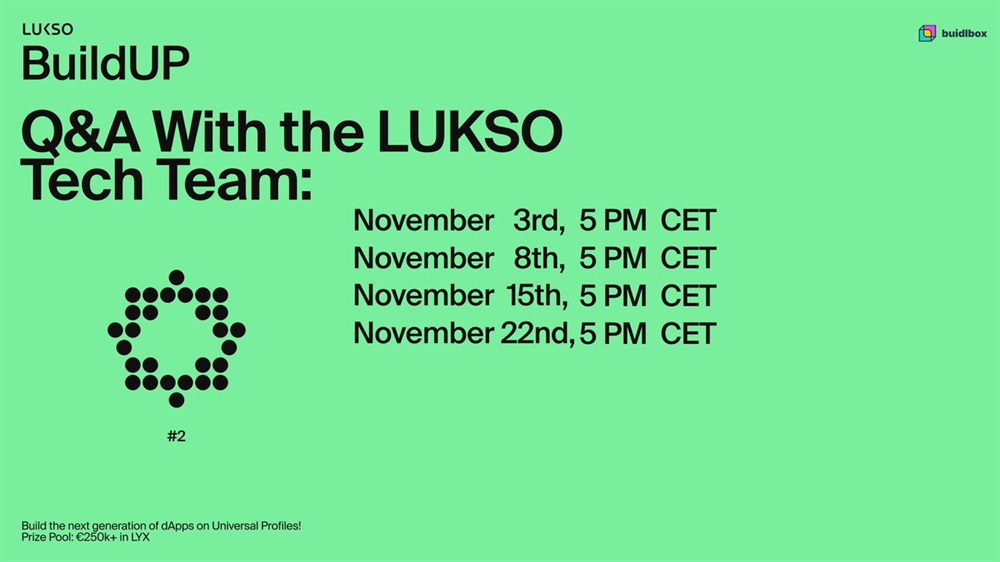Don’t miss the first Q&A session for the hackathon with LUKSO’s Tech Team today at 5pm CET! 💭✨