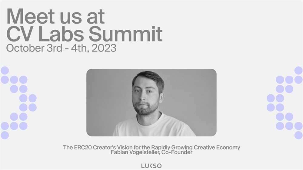 LUKSO Token’s co-founder, Fabian Vogelsteller, is set to present his vision for the burgeoning creative economy at the CV Labs Summit in Zug on October 4th.