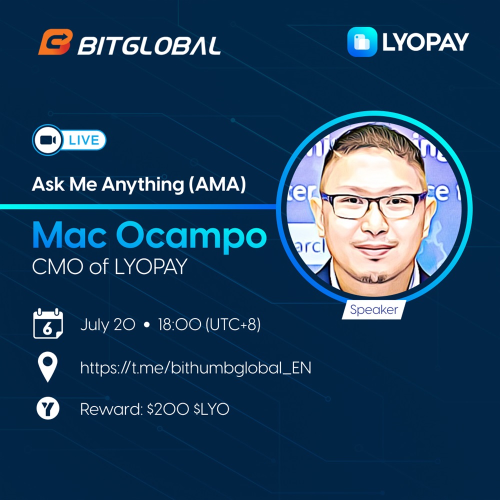 LYOPAY is collaborating with @BithumbGlobal for an AMA event with our CMO, Mac Ocampo. The 5 participants sharing the best questions will be rewarded with $200 value in LYO Credit (LYO)!