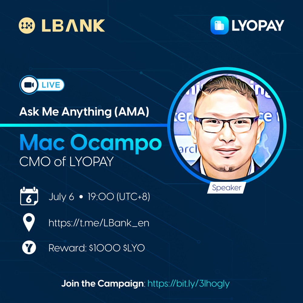 LYOPAY is collaborating with @LBank_Exchange for an AMA event with our CMO. 🤝🏻 5 participants sharing the most outstanding insights or questions will be rewarded with $200 $LYO each 🤩
