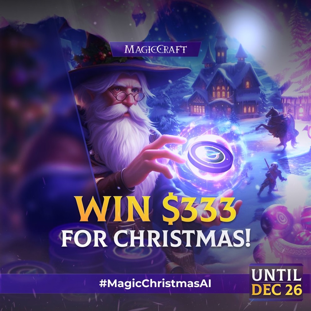 MagicCraft is hosting an art contest where participants are required to create an AI image featuring MagicCraft characters celebrating Christmas. The winner of the contest will receive a prize of $333 in MCRT. The contest begins on December 19th and ends on December 26th.