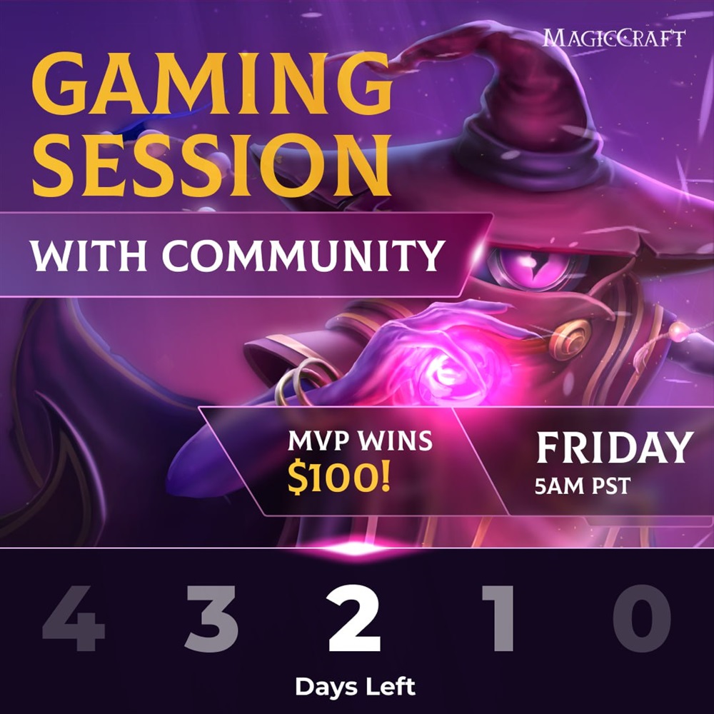MagicCraft is organizing a gaming session with its team and community members on October 13th. The event will provide an opportunity for participants to interact with the team and showcase their skills. The most valuable players (MVPs) stand a chance to win a prize of $100.