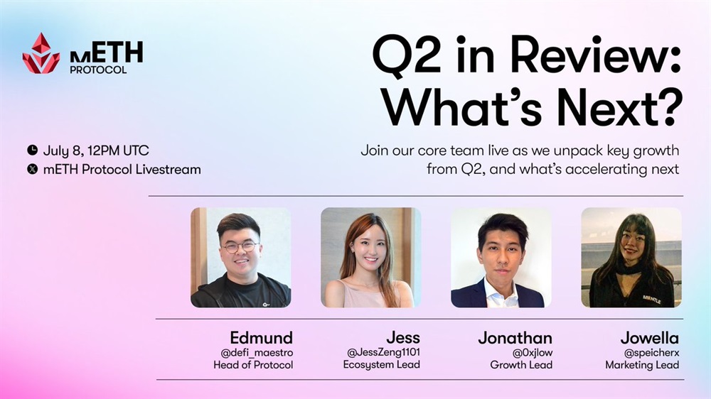 Mantle Restaked ETH will hold an AMA on X to discuss the quarterly recap on July 8th at 12:00 UTC.