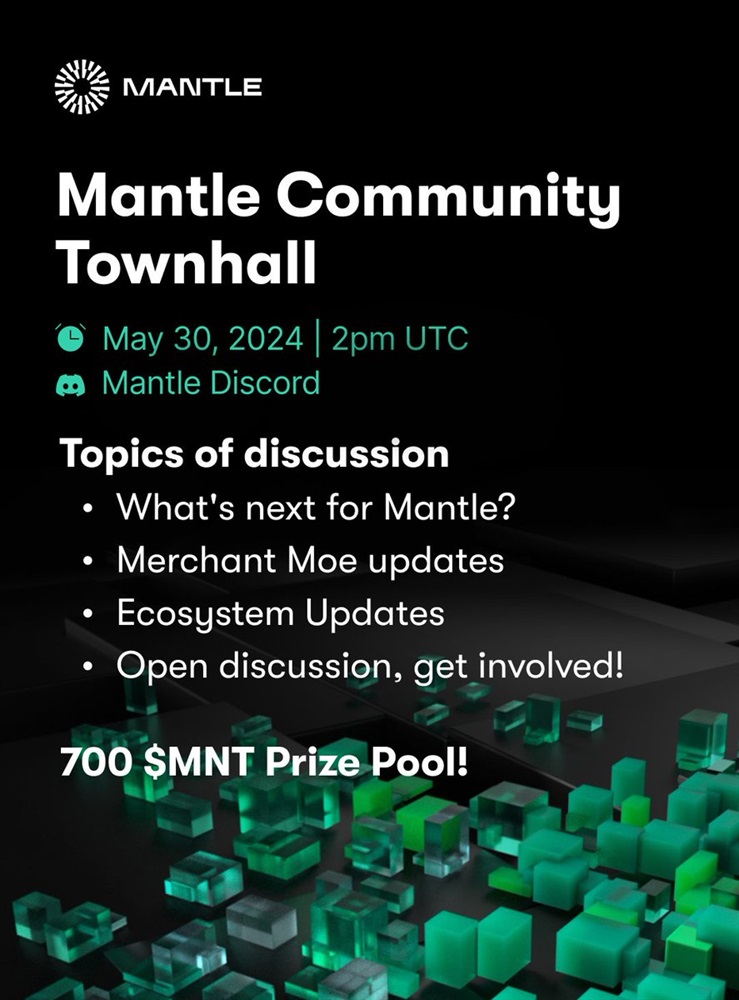 Mantle Staked Ether will host a community call on May 30th at 2 PM UTC. During the event, updates on Mantle and cmETH insights will be shared. There will also be updates from Merchant Moe and time for discussion.