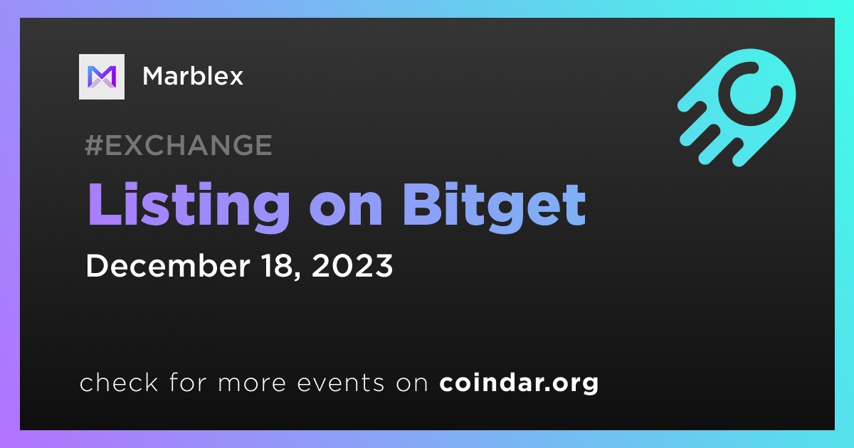 Bitget will list Marblex under the MBX/USDT trading pair on December 18th at 12:00 UTC.
