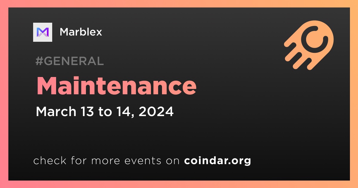 Marblex has announced that it will be undergoing maintenance on its NFT Staking and MARBLEX Wallet services. The maintenance for NFT Staking is scheduled to start on March 13th at 05:00 UTC and end on March 14th at 07:00 UTC. The MARBLEX wallet service will be under maintenance on March 14th from 01:00 UTC to 05:00 UTC.