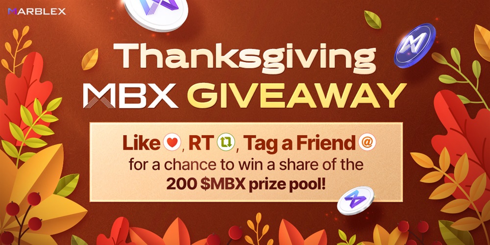 Marblex will host giveaway event, offering a total of 200 MBX tokens to 20 winners.The event begins on November 25th and concludes on November 26th.