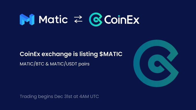 We’re happy to announce that Hong Kong-based exchange @coinexcom is listing $MATIC!