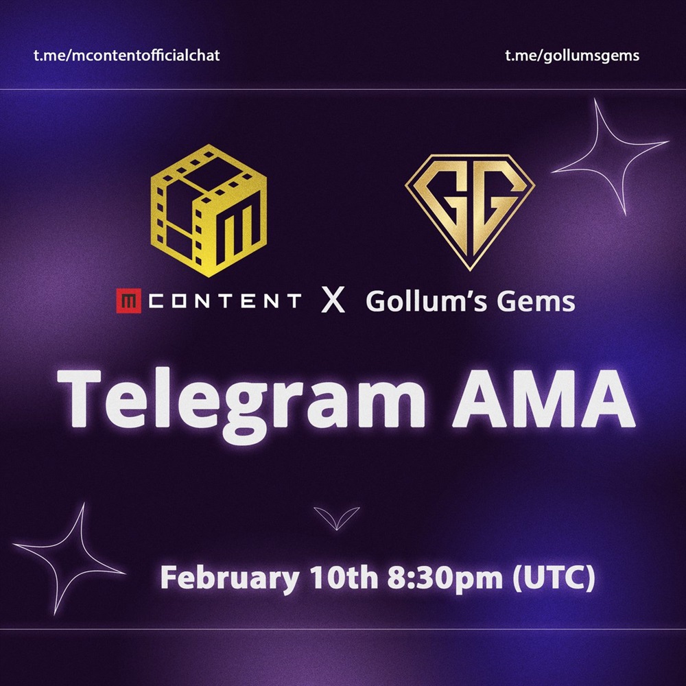 The community of Gollum's Gems (t.me) are hosting #MContent for a very special #AMA on February 10th at 8:30pm (UTC) 🚀