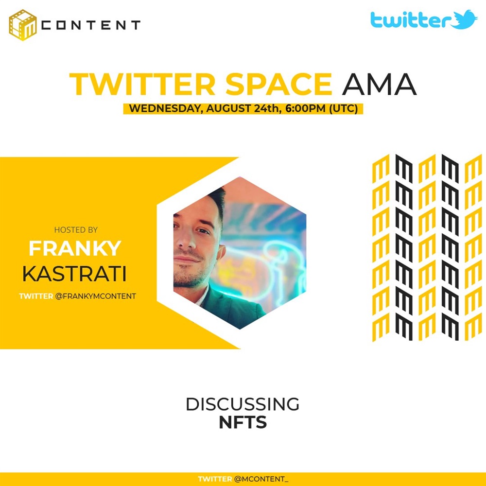 Tune in today for another Twitter Space session with our one and only Crypto Marketing Manager @frankymcontent, who will discuss NFTs.