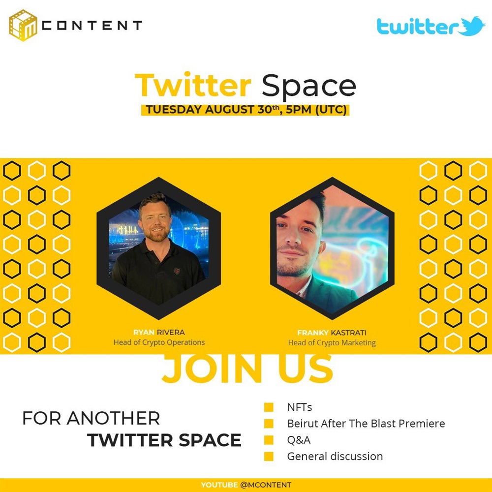 Stay tuned for today’s #TwitterSpaces hosted by none other than @Mcontent_SSJ and @frankymcontent 😎