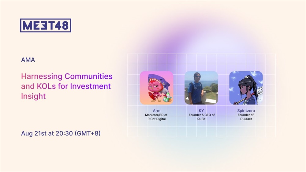 MEET48 will host an AMA on X on August 21st at 12:30 UTC. The discussion will examine how communities and key opinion leaders can be leveraged to obtain investment insights.