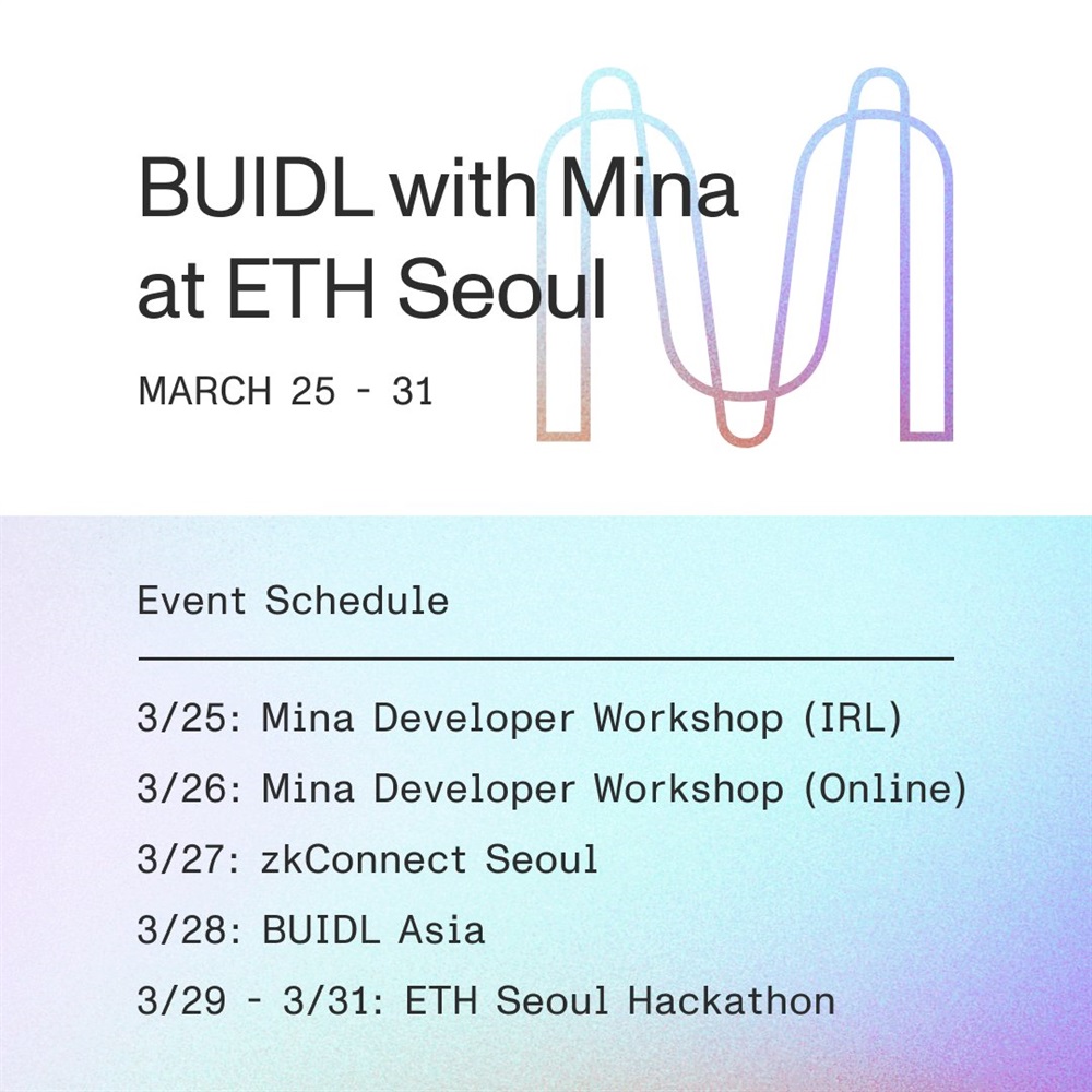 Grab your spots → https://minaprotocol.com/blog/buidl-with-mina-protocol-at-eth-seoul-2024