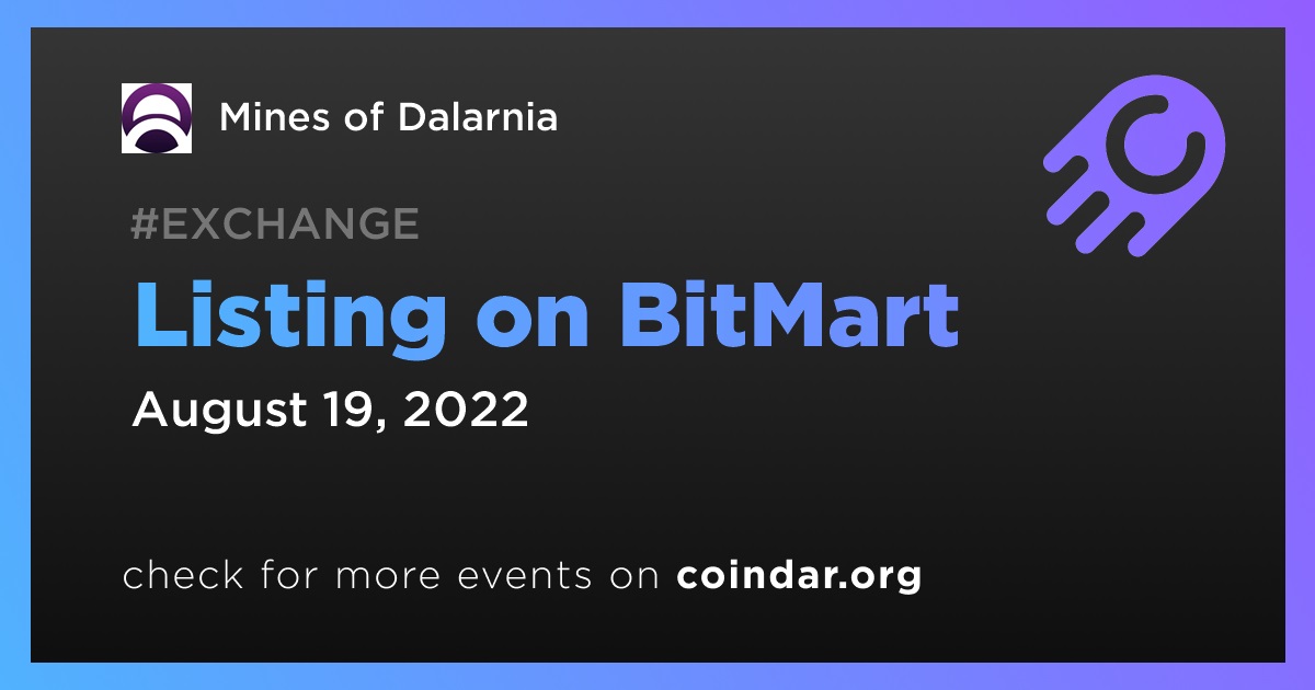 BitMart will be the 6th largest among the exchanges where Mines of Dalarnia is listed