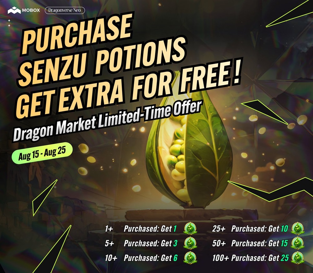 Mobox is introducing a limited-time offer at the Dragon Market in Dragonverse Neo. The offer, which is set to run for four days, will allow users to purchase Senzu Potions and receive additional ones at no extra cost. The snapshot time for this event is scheduled for August 25, 8 AM UTC.