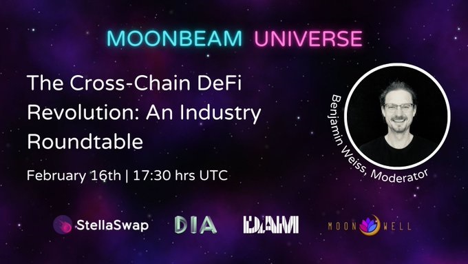 We’ll be joined by @StellaSwap, @DIAdata_org, @DAM_Finance, & @MoonwellDeFi for their take on how x-chain interoperability is changing the space.