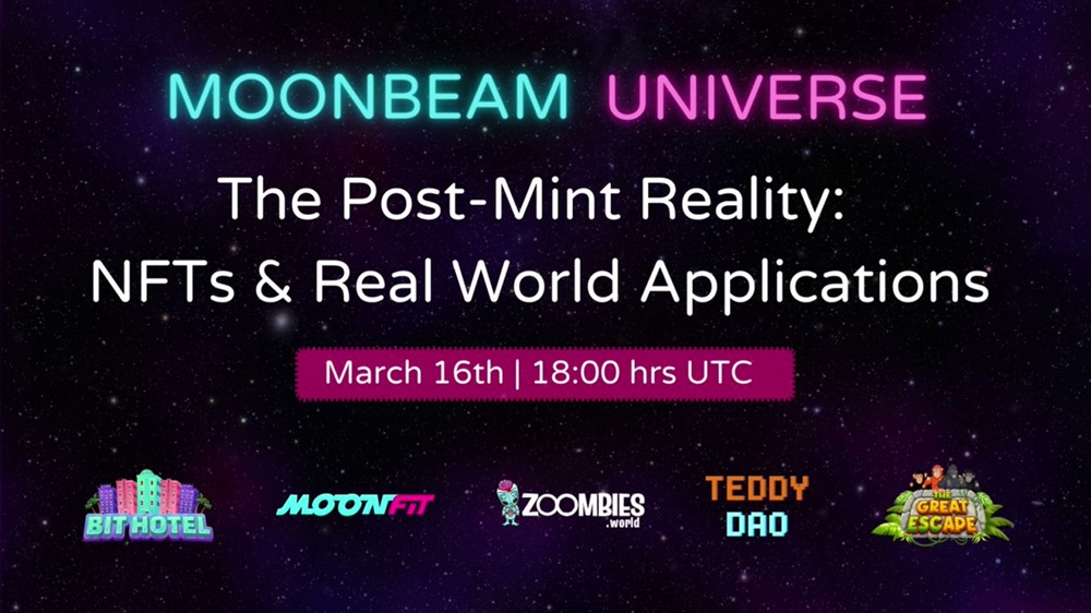 🤩 Excited to announce @MoonFitOfficial, @playbithotel, @CryptozNFT, @GLMRApes, & @TeddyDaoNFT as our guests for the #MoonbeamNFTUniverse Roundtable!