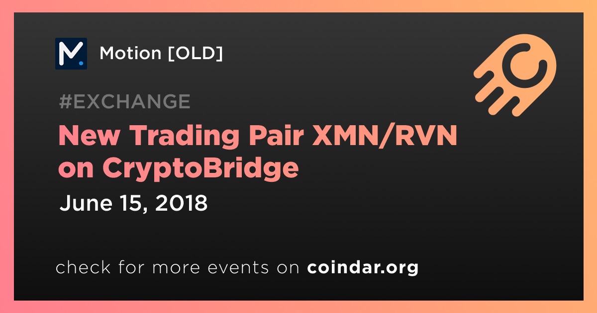 #update #cryptotrading #CryptoBridge Happy to announce that $XMN #motion now has a new trading pair with $RVN Thank You to @CryptoBridge for your support! Live now at: wallet.crypto-bridge.org