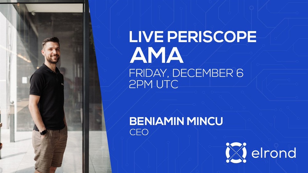 Join us Saturday, December 7th, at 2PM UTC for a live 🎥 AMA with Elrond’s CEO, @beniaminmincu right here on Twitter.