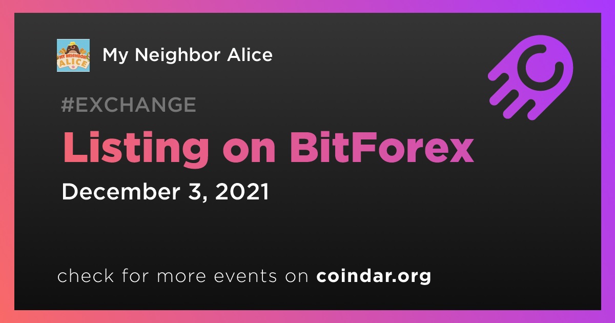 My Neighbor Alice ALICE: Listing on BitForex