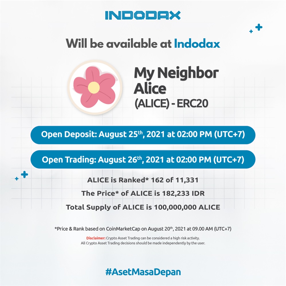 Indodax will be the 54th largest among the exchanges where My Neighbor Alice is listed