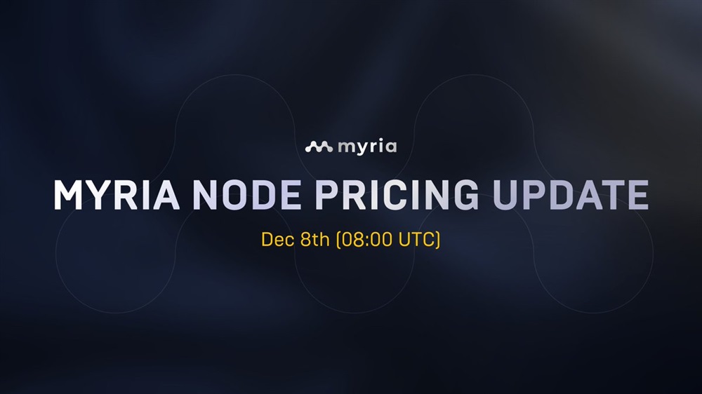 Myria has announced a change in the pricing of its node licenses. This change, which is set to take effect from December 8, is in response to the increased demand experienced over the past months. The base price of a Myria Node will see an increase, and the pricing mechanism will shift from an exponential to a linear ramp.