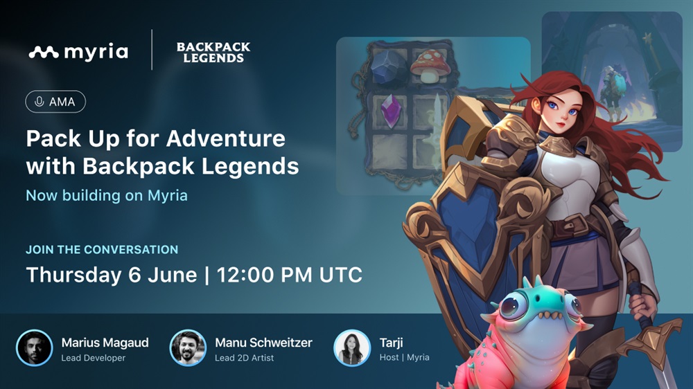 Myria will host an AMA on X featuring the creators of Backpack Legends, a multi-class battler game developed by Jurassic Studios. The event will focus on the unique combat system of the game, which emphasizes the importance of inventory management. The event is scheduled to take place on June 6th at 12:00 pm UTC.