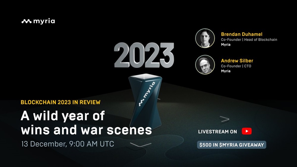 Myria will host a live stream on YouTube on December 13th at 9:00 UTC. The co-founders, Andrew Silber and Brendan Duhamel, will be reflecting on the year’s achievements, milestones, and lessons learned.