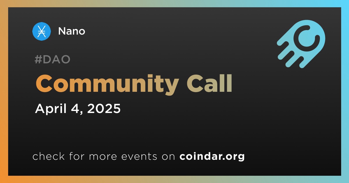 Nano will host a community call on April 4th at 18:00 UTC. This meeting is scheduled to discuss ongoing projects and plans within the Nano ecosystem.