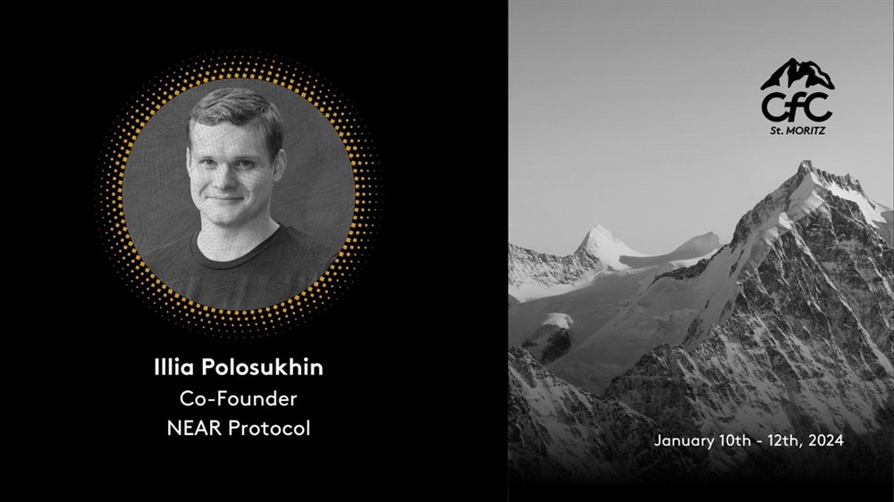 Near Illia Polosukhin, co-founder of Near will be giving a talk at the CfC St. Moritz conference in St. Moritz from January 10th to 12th. The talk will be focused on the use of computers and global online data to mimic and sometimes rival the capabilities of the human mind.