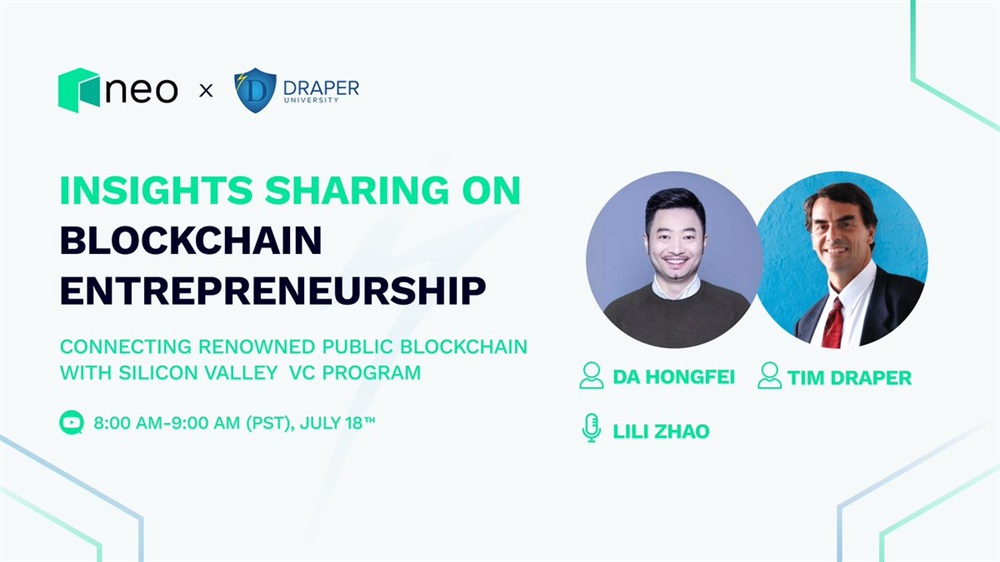🤩We are thrilled to announce a panel discussion between our founder @dahongfei and @TimDraper, Silicon Valley VC investor, on July 18th, to kick off the Neo and @draper_u collaboration.