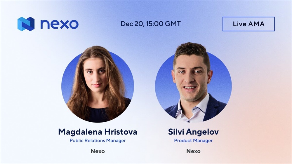 NEXO will host an AMA on YouTube featuring the public relations manager Magy Hristova and product manager Silvi Angelov. The session will take place on December 20th.