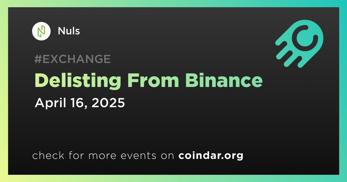 Binance will delist Nuls (NULS) on April 16th at 3:00 UTC.